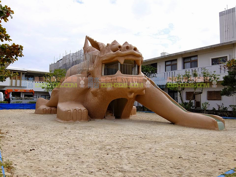 上圖的卡通動物滑梯是用玻璃鋼制作,用玻璃鋼制作的卡通動物滑梯工序和用pu制作的卡通動物滑梯工藝是不一樣的,制作的步是先用泥塑或泡沫雕塑出卡通動物滑梯的形狀,然后翻制卡通動物滑梯外模,在再卡通動物滑梯外模內(nèi)制作卡通動物滑梯模塊,后組裝到一起,打磨、拋光、上色即可。
