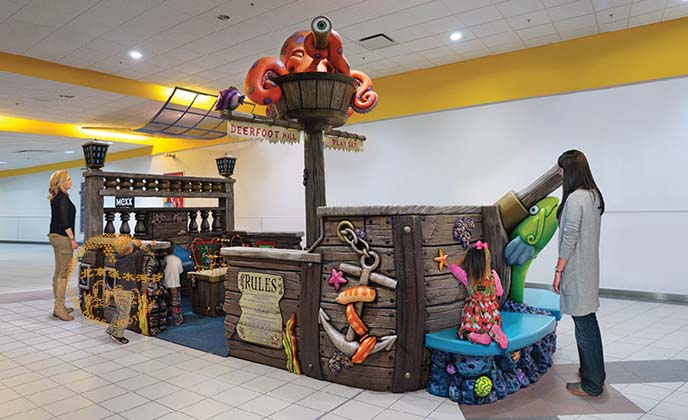 制作成船的外形,讓人有一種看到幼兒園室內(nèi)門頭外邊就想看內(nèi)部的想法。