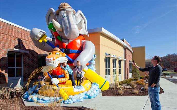 做幼兒園室外門面雕塑的時候注意客戶的建筑哪里是可以利用的,哪里是最醒目的,要把幼兒園室外門面雕塑做到最醒目的地方,使經過的人很遠就能看到,做好的幼兒園室外門面雕塑最好能成為當地的標志性建筑。