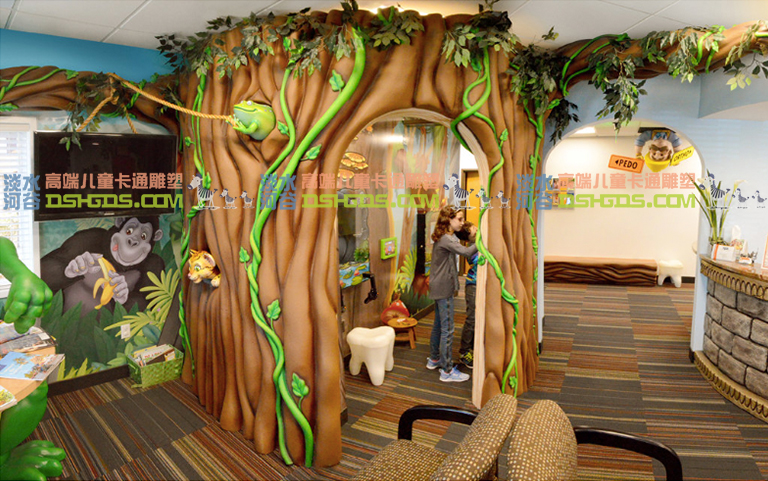 幼兒園裝飾制作時,在要求嚴格的地方,不能現場雕塑、不能做油漆,這時就只能在工廠制作好玻璃鋼仿真樹半成品,到 幼兒園裝飾現場組裝了,玻璃鋼仿真樹有一個很大到缺點就是不能把仿真樹做的很漂亮。